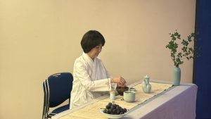 本格的な高級茶藝技師の2つの茶藝も堪能し、さらに、映画に登場するグラスの龍井茶、茶筅で泡だてた宋代の点茶を、参加者全員で楽しむという贅沢さです。
