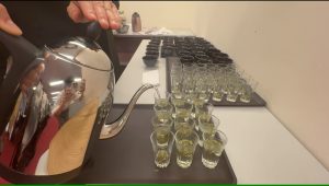 参加者のグラス茶に湯を継ぎ足し、専門家による映画製作エピソードや歴史茶トークを存分に楽しんでいただきました👌